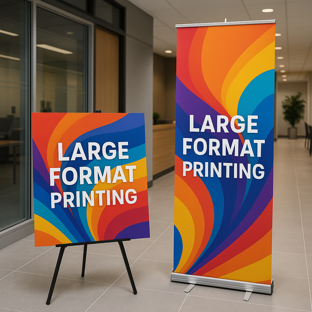We print with latex ink that is environmentally friendly, flexible, durable, and fade resistant. We can print on dark substrates with white and color ink. We can print on flexible (think wall graphics, banners) or rigid (aluminum composite, foam core, acrylic) materials. Contact us today to discuss your needs.